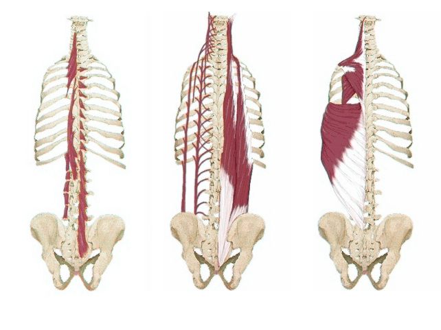 The muscles of the thoracic spine are arranged in layers. Those closest to the skin's surface run from the back of the vertebrae to the shoulder blades. Others wrap around the rib cage and connect to the shoulders. Strap-shaped muscles called erector spinae make up the middle layer of muscles. These muscles run up and down over the lower ribs and thorax (the rib cage), and cross to the low back. The deepest layer of muscles attaches along the back of the spine bones, connecting the vertebrae. Muscles also connect from one rib to the next.