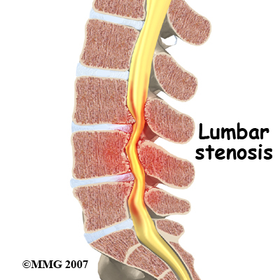 Stenosis is a term meaning narrowing. There are times when the canal for the spinal cord is narrowed. The openings for the nerve roots may also be narrowed. This will usually cause compression of the nerve structures. When the spinal cord or spinal nerves are compressed, pain, changes in feeling and/or motor function of the muscles can happen.