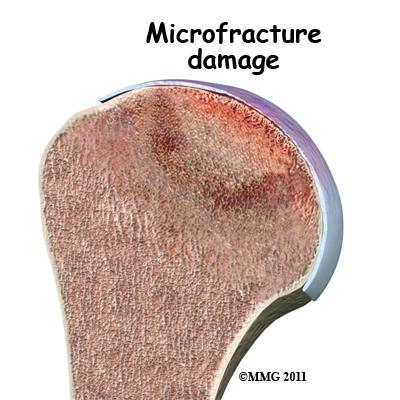 Once enough microfactures occur, the bone begins to collapse and the articular cartilage covering the joint surface also starts to collapse. Eventually, there will be damage to the entire shoulder joint.