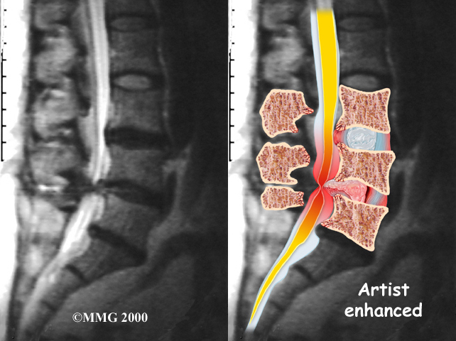 The best way to see the effects and extent of lumbar spinal stenosis is with a magnetic resonance imaging (MRI) scan. The MRI machine uses magnetic waves rather than X-rays to show the soft tissues of the body. This test gives a clear picture of the spinal canal and whether the nerves inside are being squeezed. This machine creates pictures that look like slices of the area your doctor is interested in. The test does not require dye or a needle.