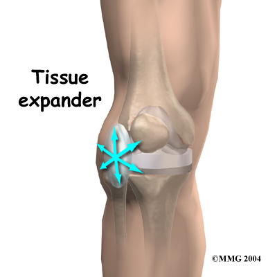 Another option is to use soft-tissue expanders. These are placed just under the skin next to where the revision incision will eventually go. The expanders stay in for up to eight weeks and are removed when you go in for the revision surgery. The idea is that the skin will have stretched enough so that, when the revision procedure is done, the edges of the skin can be closed and sutured together.