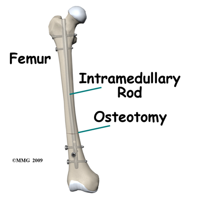 A derotational osteotomy requires the surgeon to cut the bone, rotate it to improve the alignment and hold the bones in that position while they heal. Some type of metal hardware is generally used to hold the bones in place until they heal.