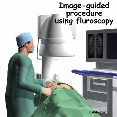 Radiofrequency ablation is done with the help of fluoroscopic guidance. The fluoroscope is an x-ray machine that allows the doctor to actually see an x-ray image while doing the procedure. This allows the doctor to watch where the needle electrode goes as it is inserted. This makes placing the electrode much safer and much more accurate. In performing radiofrequency ablation, your doctor inserts a needle electrode near the facet joint so that the tip of the needle is very near the medial branch nerve that travels to the facet joint. Once your doctor is sure that the tip of the needle is in the right place, the tip of the needle is heated to cauterize and destroy the nerve. Once the nerves carrying the sensation from the painful joints are destroyed, your pain should be reduced.