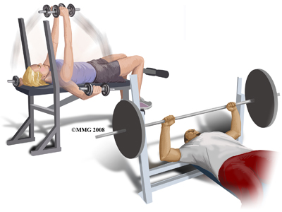 One of our physical therapists at FYZICAL Savannah can help you with advice for activity modification and specific strength training tips for this problem. For example, if you narrow your hand spacing on the barbells this takes the stress off the distal clavicle. Stopping your bench press two inches above the chest also decreases the stress on the distal clavicle. Some lifters place a two-inch folded towel on the chest as a reminder of when to stop.