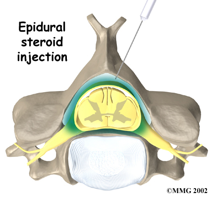 Epidural Steroid Injection: Neck pain or pain that spreads down the arm may require treatment with an epidural steroid injection (ESI). In an ESI, the medication mixture is injected into the epidural space around the nerve roots. Generally, an ESI is given only when other nonoperative treatments aren't working. ESIs are not always successful in relieving pain. If they do work, they may only provide temporary relief.
