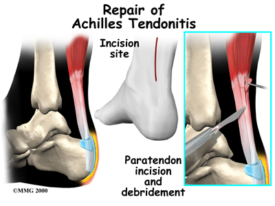 In some cases of persistent tendonitis and tendonosis a procedure called debridement of the Achilles tendon may be suggested to help treat the problem.