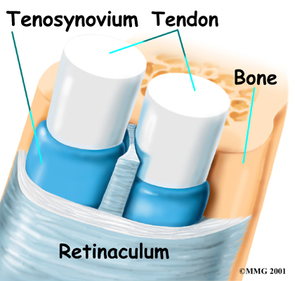 near the end of the radiusbone of the forearm. The tunnel helps hold the tendons in place, like the guide on a fishing pole.