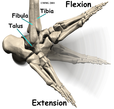 The talus moves mainly in one direction. It works like a hinge to allow your foot to move up and down.