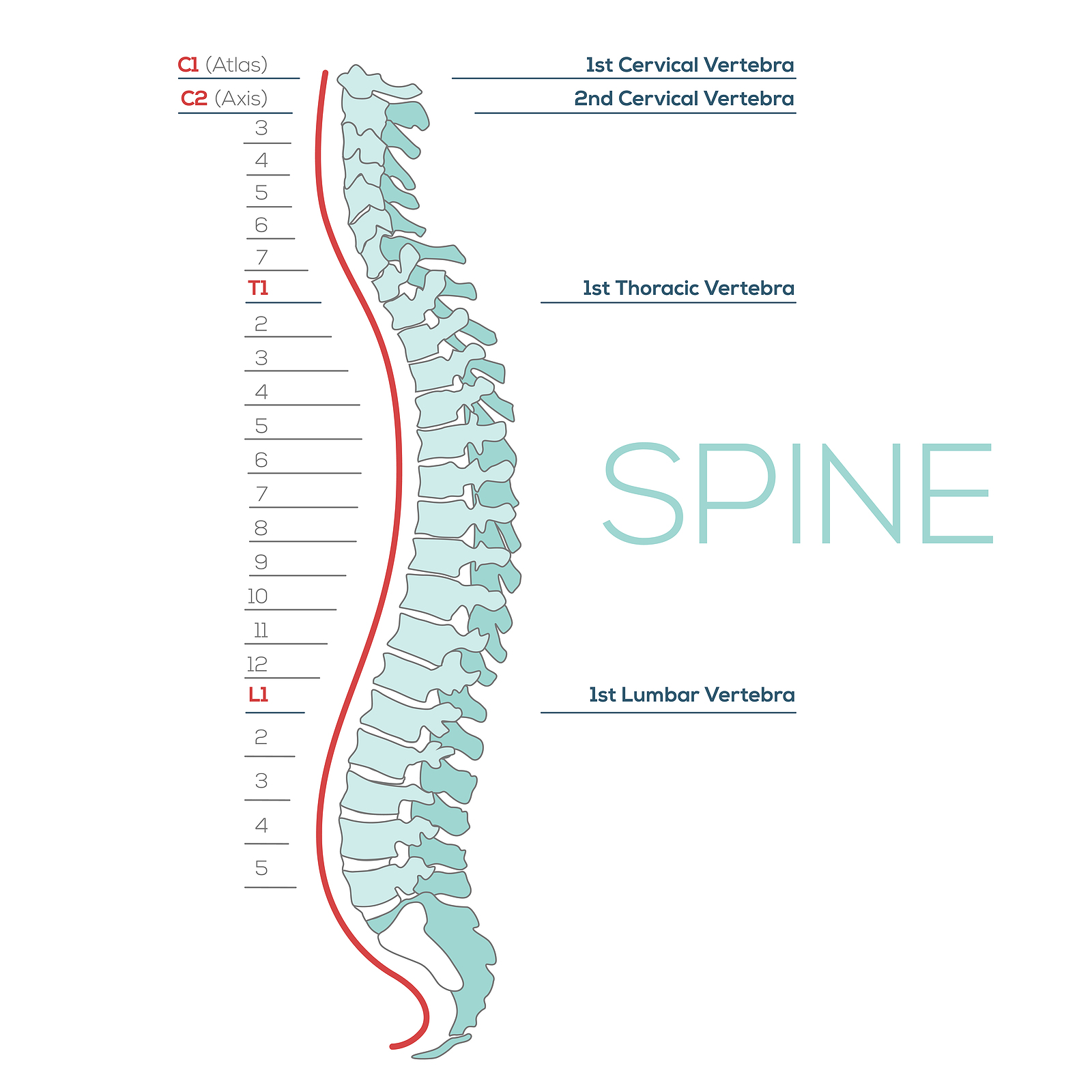The human spine is made up of 24 spinal bones, called vertebrae, as well as the sacrum and the coccyx. The sacrum is a triangular bone near the bottom of the spine and the coccyx is more commonly known as the tailbone.