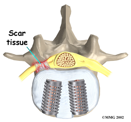 Any surgery that is done near the spinal canal can potentially cause injury to the spinal cord or spinal nerves. Injury can occur from bumping or cutting the nerve tissue with a surgical instrument, from swelling around the nerve, or from the formation of scar tissue. An injury to the spinal cord or spinal nerves can cause muscle weakness and a loss of sensation to the areas supplied by the nerve.