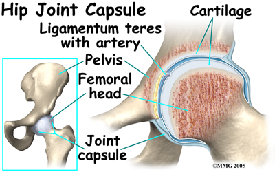 In the growing child, there are special structures at the end of most bones called growth plates. The growth plate is sandwiched between two special areas of the bone called the epiphysis and the metaphysis. The growth plate is made of a special type of cartilage that builds bone on top of the end of the metaphysis and lengthens the bone as we grow. In the hip joint, the femoral head is one of the epiphyses of the femur. The capital femoral epiphysis is somewhat unique. It is one of the few epiphyses in the body that is inside the joint capsule. (The joint capsule is the tissue that surrounds the joint.)
