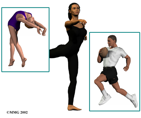 Spondylolysis commonly occurs in young gymnasts who regularly practice back bends as part of their routines. Football linemen and dancers are also prone to spondylolysis. Symptoms sometimes appear when an athlete quickly ramps up his or her training intensity, applies incorrect technique, or uses poor equipment.