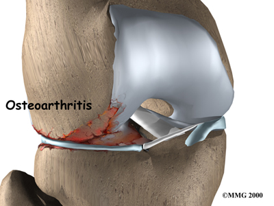 By spreading out the forces on the knee joint, the menisci protect the articular cartilage from getting too much pressure on one small area on the surface of the joint. Without the menisci, the forces on the knee joint are concentrated onto a small area, leading to damage and degeneration of the articular cartilage, a condition called osteoarthritis.