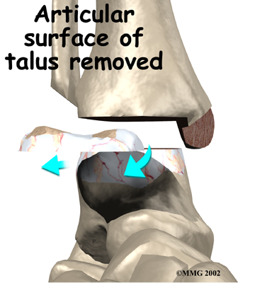 Several different operations have been developed to perform an ankle fusion. The basic procedure in each operation remains the same, however. The most common way that an ankle fusion is done is by making an incision through the skin to open the joint. Once the joint is opened, the surgeon uses a surgical saw to remove the articular cartilage surfaces of the ankle joint. Once the articular cartilage is removed on both sides of the joint, the body will try to heal the two surfaces together just as if it were fractured or broken.
