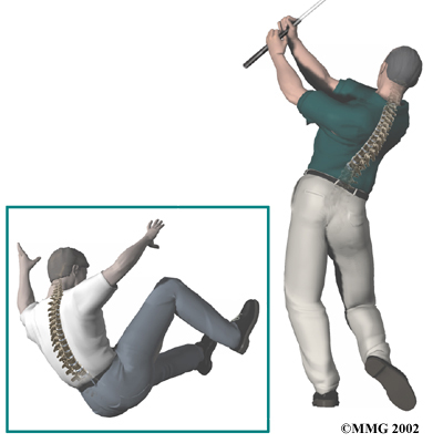 Less commonly, a thoracic disc may herniate suddenly (an acute injury). A thoracic disc may herniate during a car accident or a fall. A thoracic disc may also herniate as a result of a sudden and forceful twist of the mid-back.