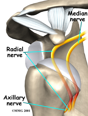 If the nerves have been stretched, a numb spot may develop on the outside of the arm, just below the top point of the shoulder. Several of the shoulder muscles may become slightly weak until the nerve recovers. But the weakness is usually temporary.