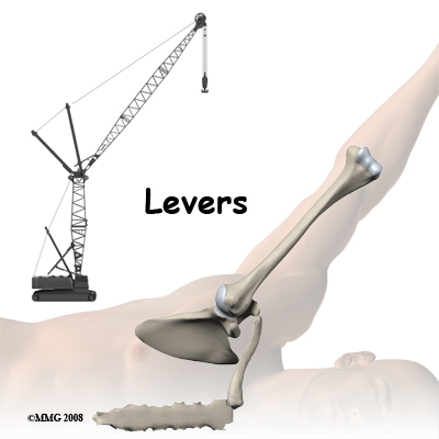 Arm movement can be compared to a crane where the main movement occurs at the end of a lever. Most shoulder movements involve a fluent combination of movements at all three joints of the shoulder. This can be appreciated by feeling the movement of the joints of the shoulder when the arm is moved.
