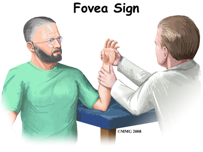 A new test called the fovea sign applies external pressure to the area of the fovea on the ulna bone. The examiner compares the involved wrist with the normal wrist. Tenderness and pain during this test is a sign that there may be a split-tear injury (down the middle length-wise) of the TFCC.