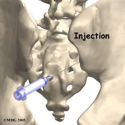 If conservative treatment is unsuccessful, your doctor may suggest injections to the joint. As described above, injections are used primarily to confirm that the pain is coming from the SI joint but they can also be useful in controlling the pain. A series of cortisone injections may be recommended to try to reduce the inflammation in and around the SI joint. Cortisone is a powerful anti-inflammatory medication that is commonly used to control pain from arthritis and inflammation. Other medications have been injected into the joint as well. A chemical called hyaluronic acid has been used for years to treat osteoarthritis of the knee. This chemical is thought to reduce pain due to its lubricating qualities and its ability to nourish the articular cartilage in the synovial joints. The true mechanism of action remains unknown, but it has been used with some success in the SI joint. All of these injections, unfortunately, are temporary and are expected to last several months at the most.